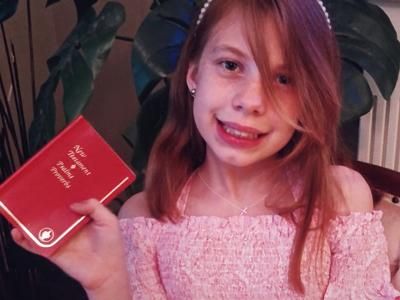 Je m’appelle Destiny et je suis un élève de cinquième année à la Cornerstone Christian Academy à Napanee, dans l’Ontario. Je vous remercie beaucoup pour le Nouveau Testament que votre organisation m’a récemment remis. C’était très gentil de votre part. Je me souviendrai toujours de votre gentillesse! Je continuerai à lire mon Nouveau Testament!